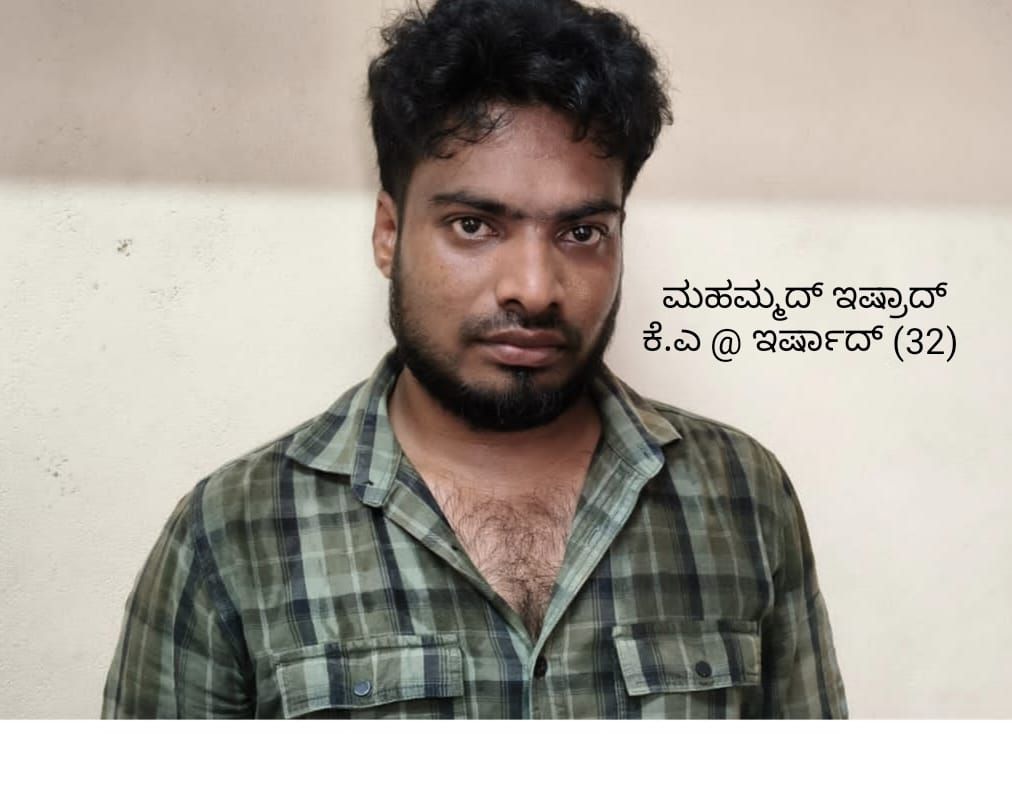 ಬಂಟ್ವಾಳ ತಾಲೂಕು ಅಳಿಕೆ ಗ್ರಾಮದ ಮಹಮ್ಮದ್ ಇಷ್ರಾದ್ ಕೆ.ಎ(32.ರ್ಷ) ಎಂಬಾತನು ತಲೆ ಮರೆಸಿಕೊಂಡಿದ್ದು ನ್ಯಾಯಲಯವು ವಾರಂಟ್ ಹೊರಡಿಸಿತ್ತು. ಆರೋಪಿಯನ್ನು ಸೆ.26ರಂದು ಬಂಟ್ವಾಳ ತಾಲೂಕಿನ ಅಳಿಕೆ ಎಂಬಲ್ಲಿ ದಸ್ತಗಿರಿ ಮಾಡಿ ನ್ಯಾಯಾಲಯಕ್ಕೆ ಹಾಜರುಪಡಿಸಿದ್ದು, ನ್ಯಾಯಾಲಯವು ನ್ಯಾಯಾಂಗ ಬಂಧನ ವಿಧಿಸಿದೆ.