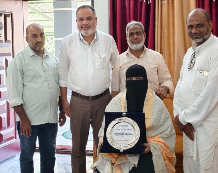 ಕೈಬರಹದ ಮೂಲಕ ಪವಿತ್ರ ಕುರ್ಆನ್ ಬರೆದ ಫಾತಿಮತ್ ಅಬೀರಾಗೆ ಎಜುಕೇಶನಲ್ ಎಕ್ಸಲೆನ್ಸ್ ಫೌಂಡೇಶನ್ ವತಿಯಿಂದ ಸನ್ಮಾನ
