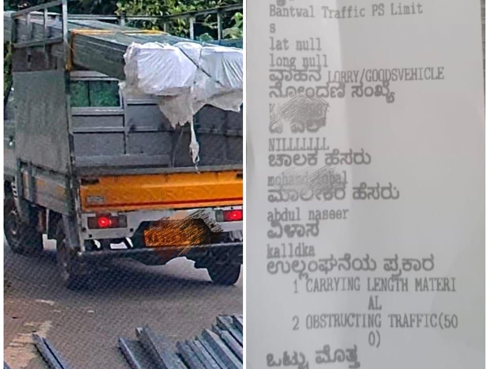 ಬಂಟ್ವಾಳ ಸಂಚಾರ ಪೊಲೀಸ್ ಠಾಣಾ ವ್ಯಾಪ್ತಿಯ ಬೋಳಂತೂರು ಎಂಬಲ್ಲಿ ಗೂಡ್ಸ್ ವಾಹನದಲ್ಲಿ ಸಂಚಾರ ನಿಯಮವನ್ನು ಉಲ್ಲಂಘಿಸಿ, ಅಪಾಯಕಾರಿಯಾಗಿ ಸಾಮಾಗ್ರಿಗಳನ್ನು ಸಾಗಿಸುತ್ತಿದ್ದ ವಿಡಿಯೊ ಸಾಮಾಜಿಕ ಜಾಲತಾಣದಲ್ಲಿ ಪ್ರಸಾರವಾಗಿದ್ದು, ಸದ್ರಿ ವಾಹನಕ್ಕೆ ಸಂಚಾರ ನಿಯಮದ ಅನ್ವಯ ಪೊಲೀಸರು ದಂಡ ವಿಧಿಸಿದ್ದಾರೆ.