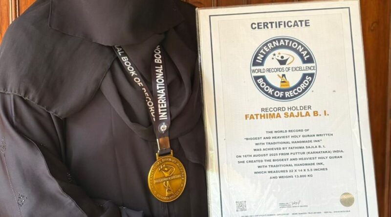 Read Moreಪುತ್ತೂರು: ಕಲಂನಲ್ಲಿ ಮಷಿ ಅದ್ದಿ, ಕೈ ಬರಹ ಮೂಲಕ ಪವಿತ್ರ ಕುರಾನ್ ಬರೆದು ಇಂಡಿಯಾ ಬುಕ್ ಆಫ್ ರೆಕಾರ್ಡ್ ನಲ್ಲಿ ದಾಖಲೆ ಬರೆದ ಕುಂಬ್ರ ಮರ್ಕಝುಲ್ ಹುದಾ